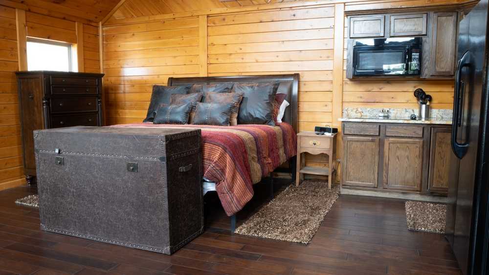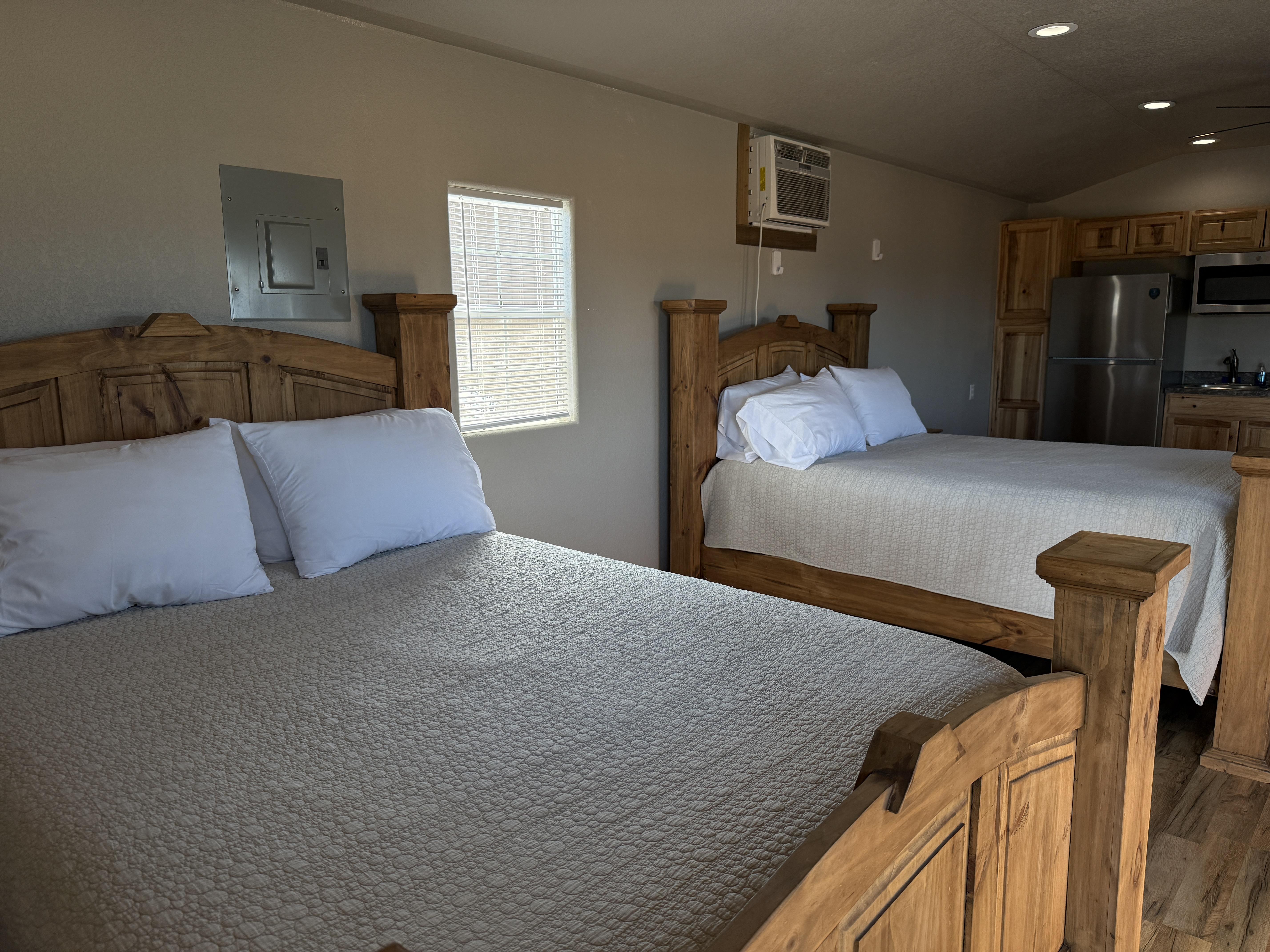 Unwind in elevated comfort in our brand new Luxury 2-Bedroom Cabin, thoughtfully designed for guests who value both space and style. This private retreat features two beautifully appointed bedrooms and a modern, spa-inspired bathroom, offering the perfect blend of relaxation, functionality, and sophistication. The cabin includes convenient in-room amenities such as a refrigerator, microwave, and Keurig® coffee machine—perfect for easy mornings, quick meals, or winding down after a full day of adventure. With an open, inviting layout and carefully curated finishes, every detail has been designed to enhance your stay. Ideal for couples, families, or small groups, this two-bedroom cabin delivers a cozy yet upscale atmosphere with all the essentials for a seamless, stress-free getaway—luxury lodging, thoughtfully placed in the heart of the outdoors.