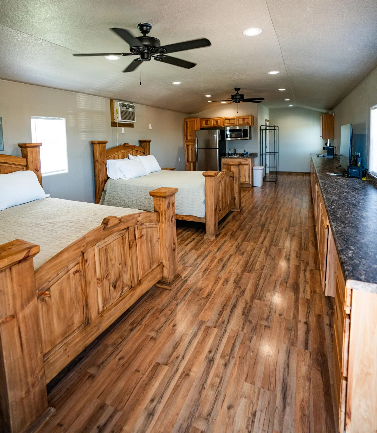 Our cabins are designed for max flexibility. Some sleep two couples, others fit full families of four or five. If you’ve got a bigger group, let us know – we’ll pair cabins side-by-side or get you into a bunkhouse setup. Just tell us your headcount and we’ll handle the rest.