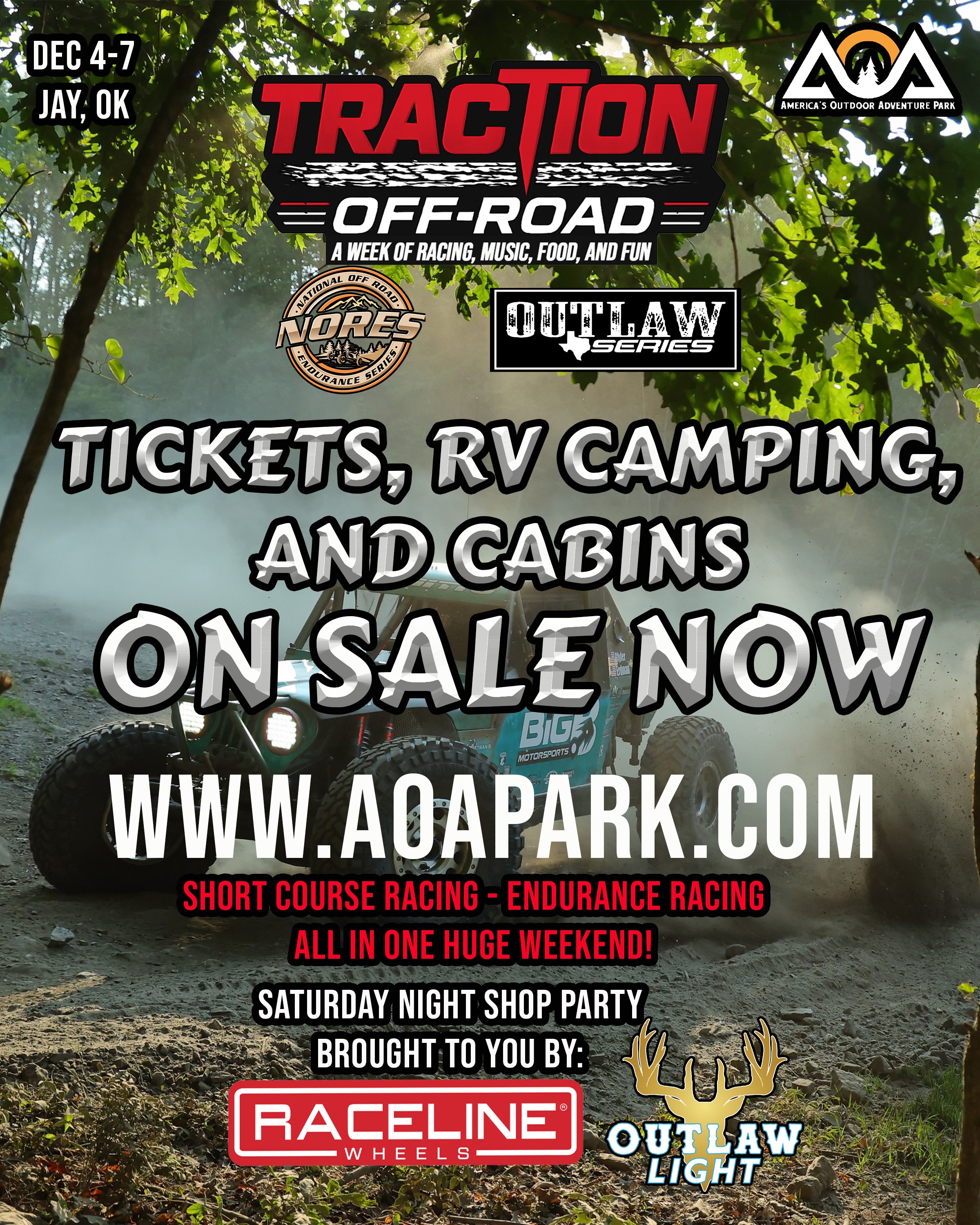 Traction is the season finale, December 4-7 at America’s Outdoor Adventure Park in Jay, Oklahoma, combining the NORES “World’s Toughest 12 Hour” endurance race and the Outlaw Short Course Racing Series into one unified event. Points are non-droppable this year. Expect varied terrain, including street, rock crawling, hills, trails and a short course, plus pre-race track preview, racer dinners, award ceremonies and the finale’s after-party. This is the Epic event—who will be champion?
